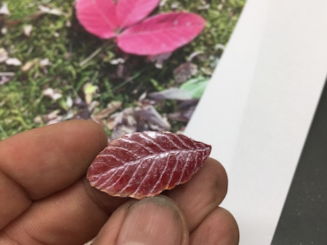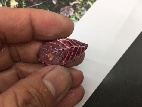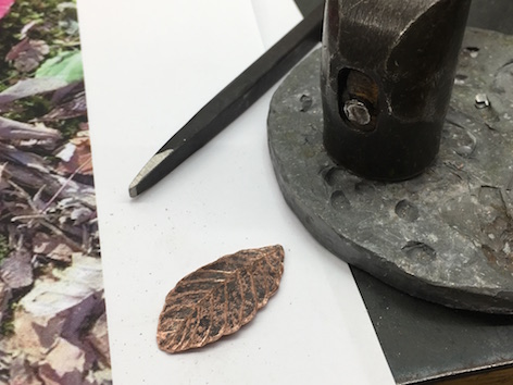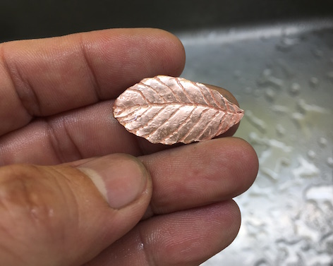 タガネで葉脈を打ってエッジはヤスリを当てて立体感を軽く出しました。