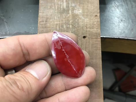 銅を熱してホウ砂水溶液に漬け込み色を出す。